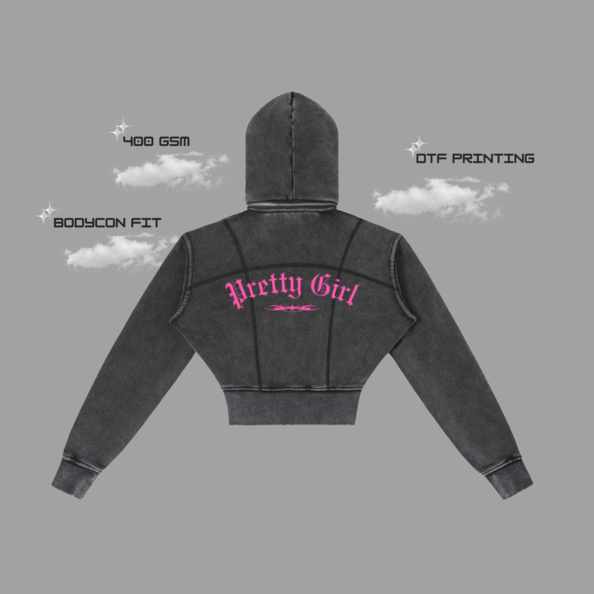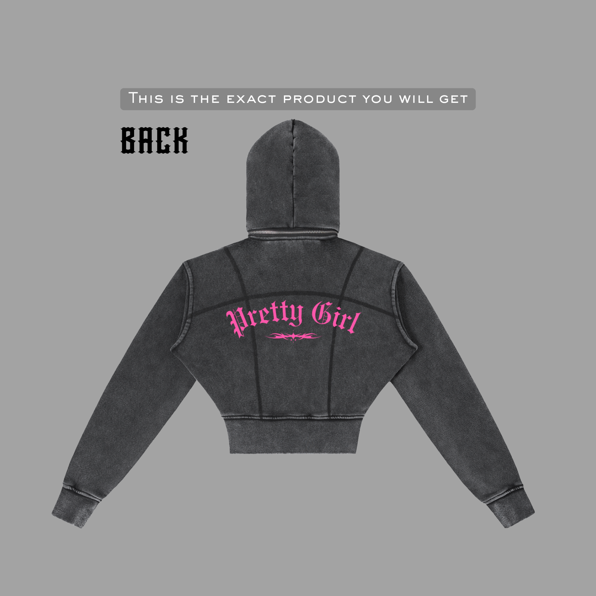 "Pretty Girl" Statement Cropped Hoodie | Vintage Washed Fleece Hoodie