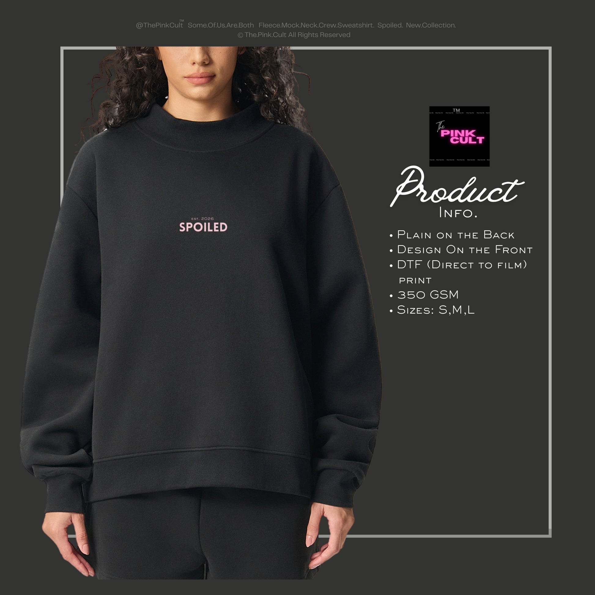 SPOILED™ Heavyweight Black Fleece Sweatshirt | 350 GSM | The Pink Cult